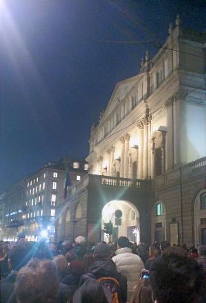 Lunedì 27 gennaio, in un tardo pomeriggio molto milanese - freddo ma non freddissimo, umido ma sopportabilmente -, molto milanese non solo per le temperature ma anche perché la popolazione - dai luoghi comuni spesso dipinta tiepida se non freddina, frettolosa, quasi distratta nel suo essere gran produttrice di lavoro - ha fatto quello che sempre ha fatto nei tempi storici della sua anima, s'è raccolta. Chi poteva, fisicamente; col sentimento, un'altra infinità. Migliaia di persone – si dice più di ottomila – sono accorse nella piazza icona di Milano, davanti al Teatro alla Scala, le strade del centro chiuse al traffico.